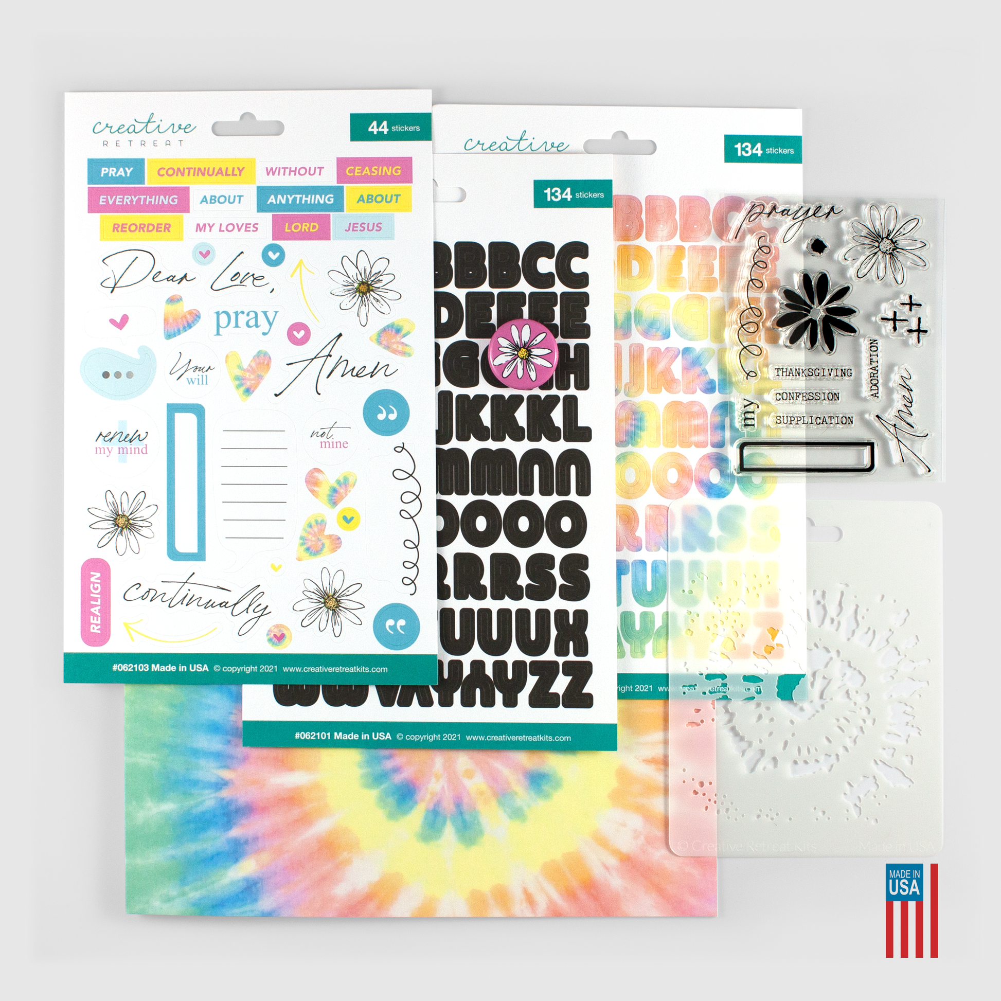 Featuring fun tie dye elements and summer daisies, the "ACTS of prayer" devotional kit will inspire your creative bible study as we dig into Jesus' own instructions for prayer (Matthew 6) -- join us!