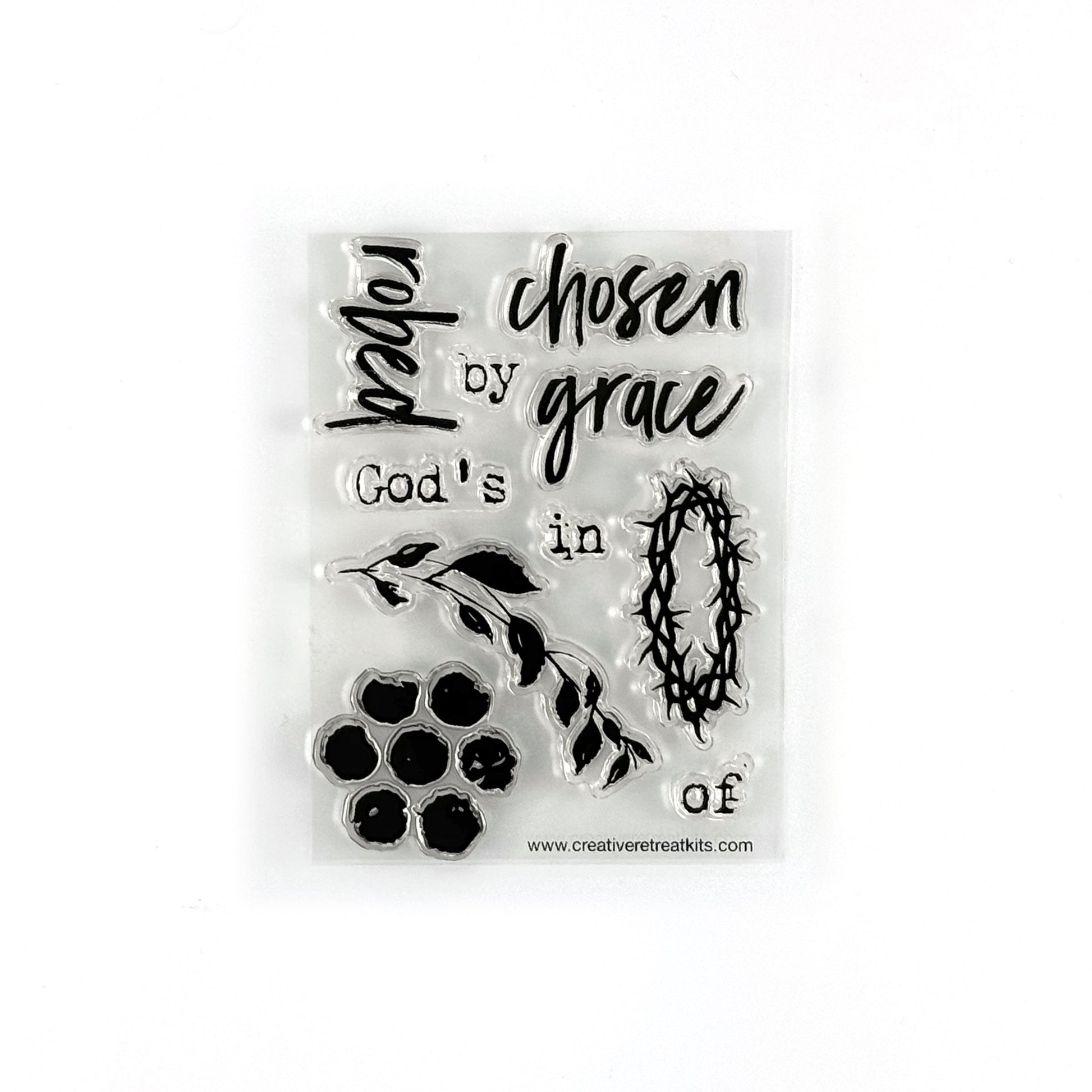 Peel a reusable stamp piece from the acetate sheet, place on a clear acrylic block, press on inkpad, and stamp! This 3" x 4" stamp set contains 10 individual stamps for bible journaling, faith art, and scrapbooking.