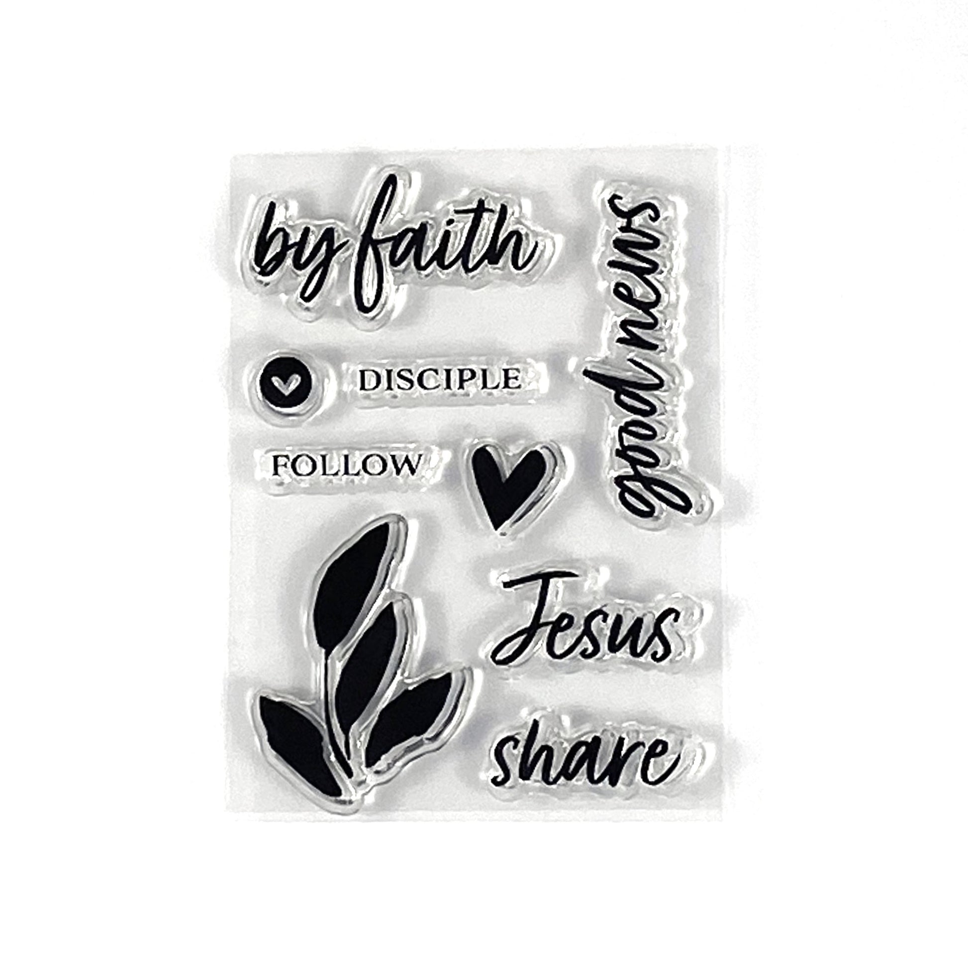 Peel a reusable stamp piece from the acetate sheet, place on a clear acrylic block, press on inkpad, and stamp! This 3" x 4" stamp set contains 9 individual stamps for bible journaling, faith art, and scrapbooking.