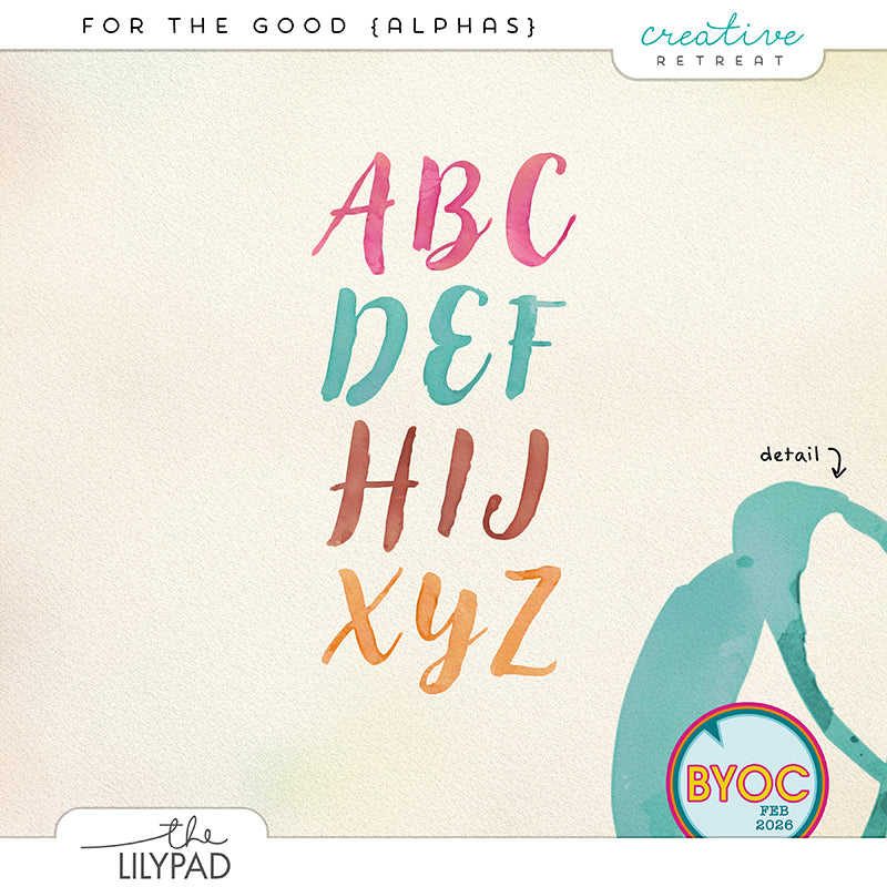 These For the Good Alphas are watercolor style digital alphabet set designed to add expressive, faith-inspired texture to your projects. Each letter features organic brush strokes, soft watercolor variation, and a slightly imperfect, painterly finish that feels both creative and heartfelt.