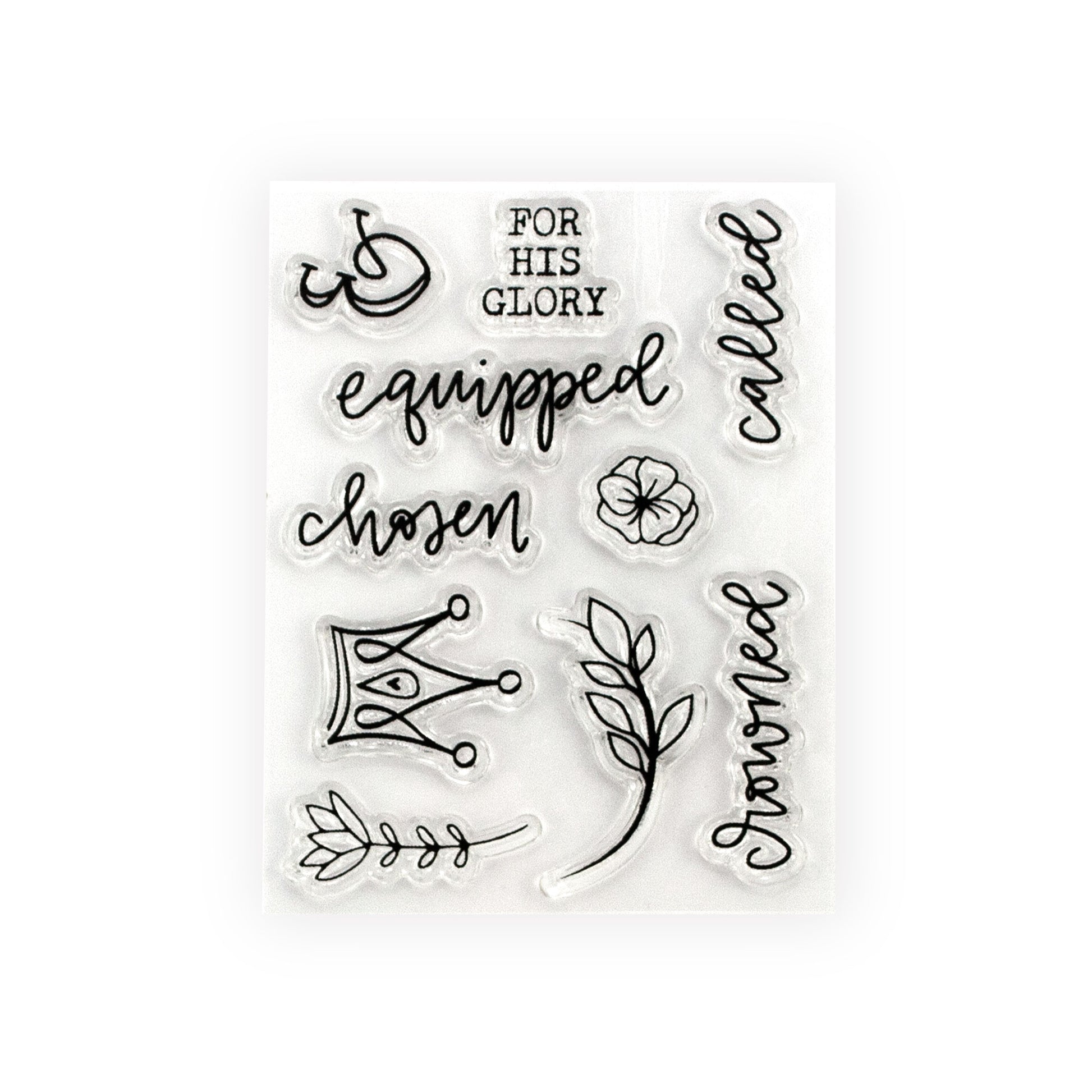 Peel a reusable stamp piece from the acetate sheet, place on a clear acrylic block, press on inkpad, and stamp! This 3" x 4" stamp set contains 10 individual stamps for bible journaling, faith art, and scrapbooking.