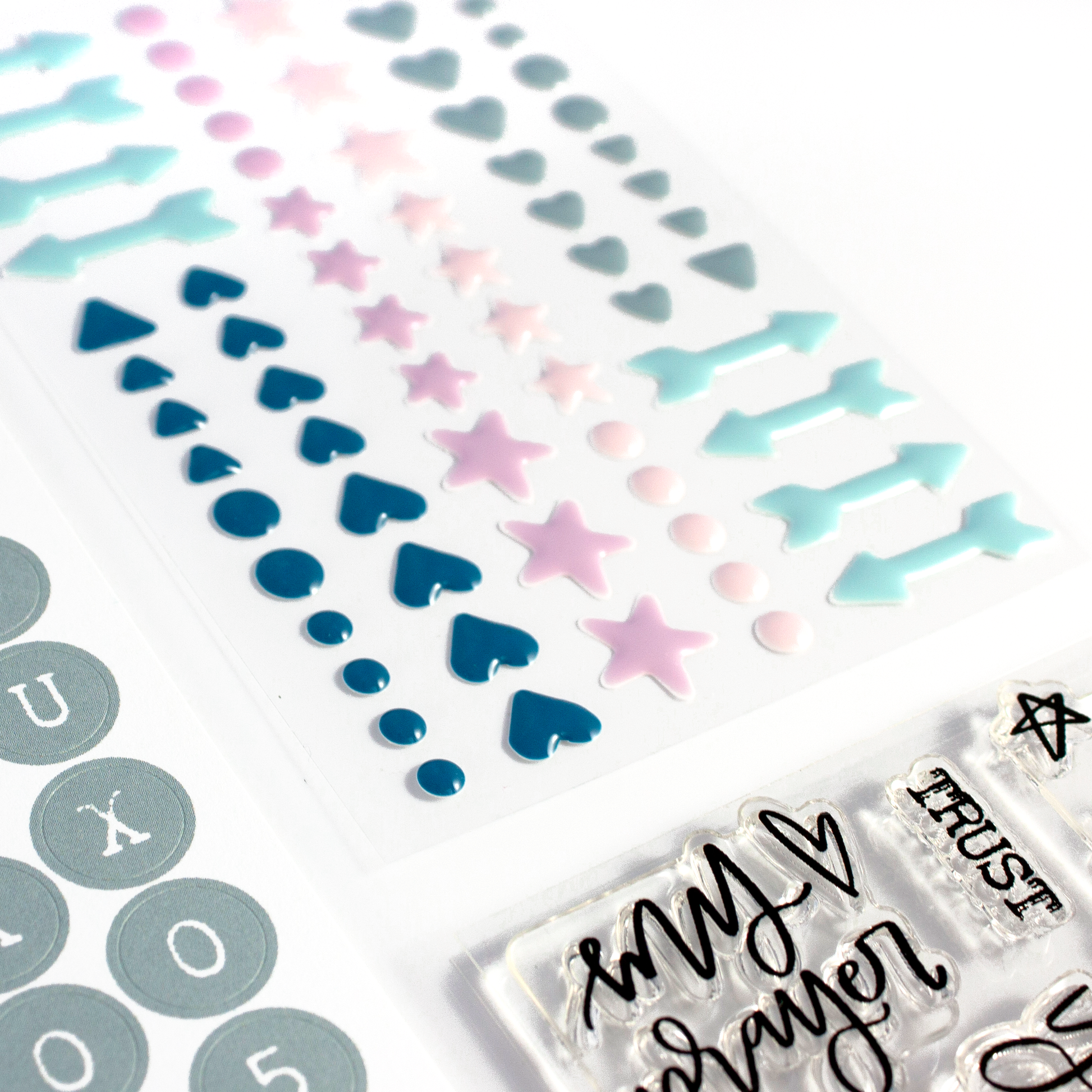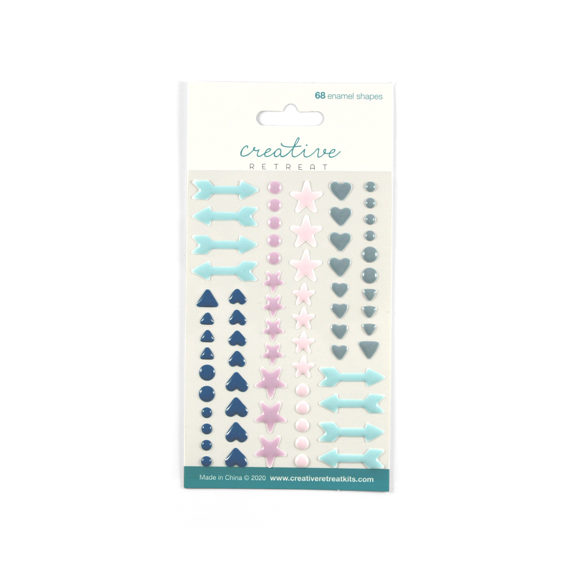 - One (1) pack of 68 enamel, adhesive shapes