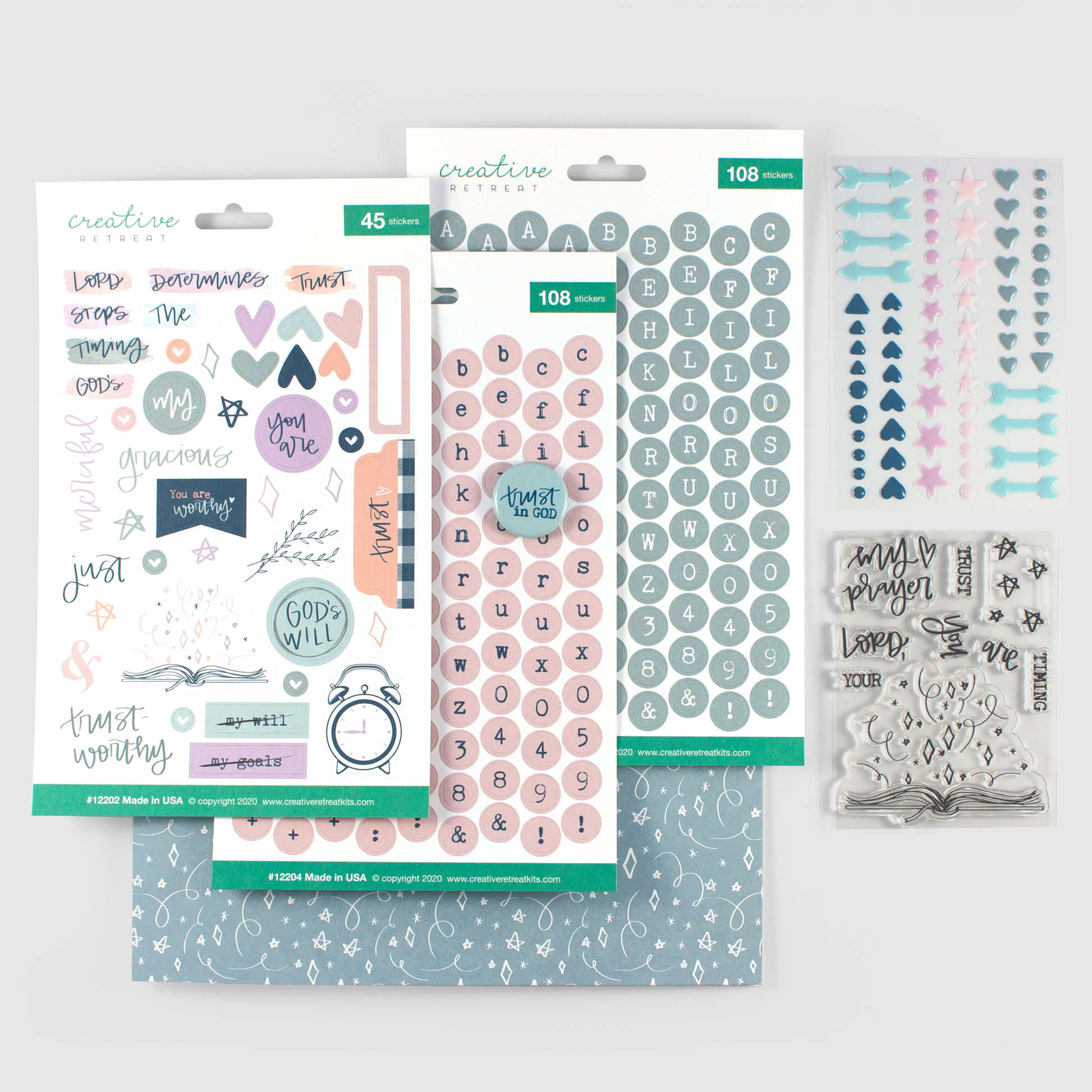 - One (1) sheet of cardstock, faith-based decor stickers (made in USA)