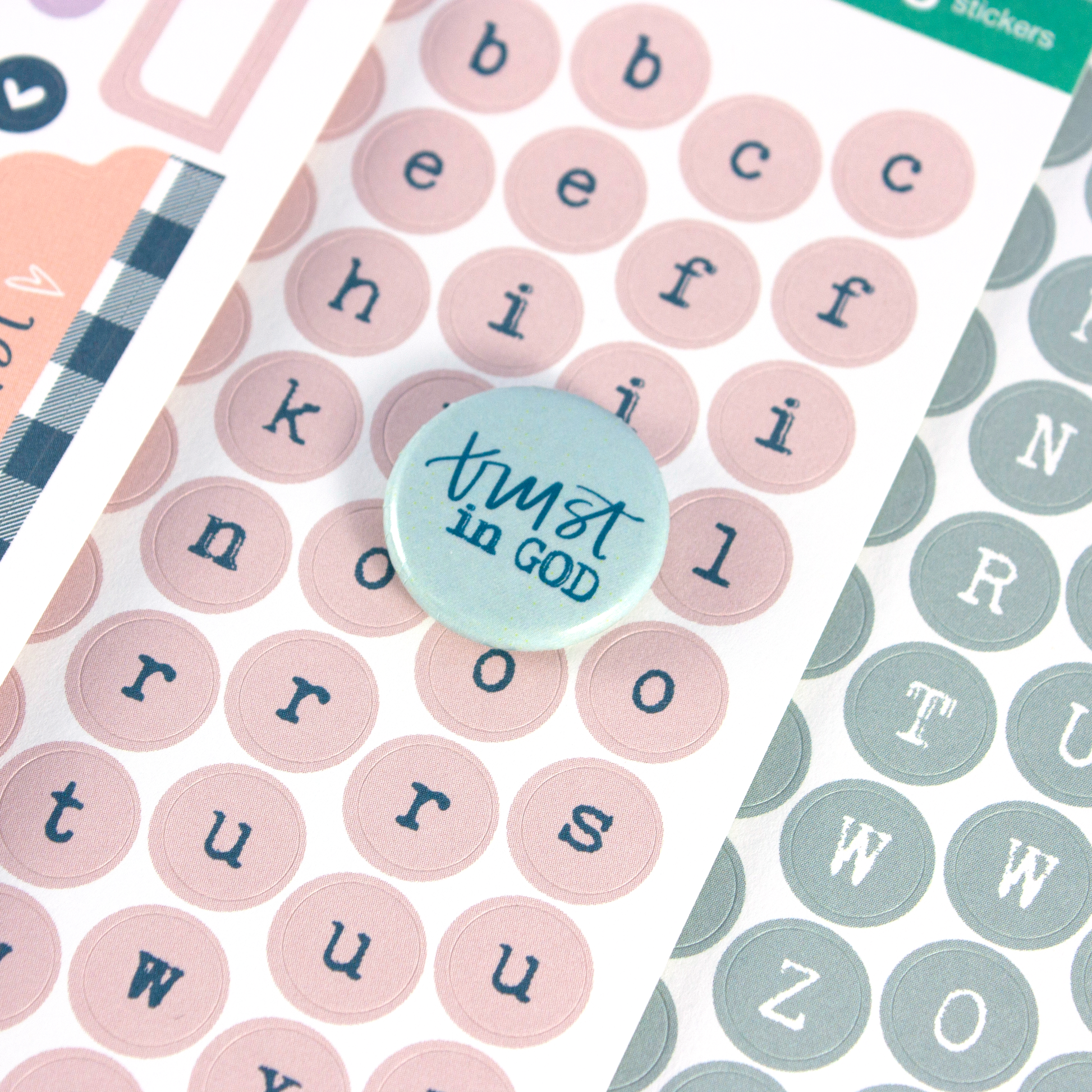 - Two (2) sheets of cardstock, alphabet stickers (made in USA)