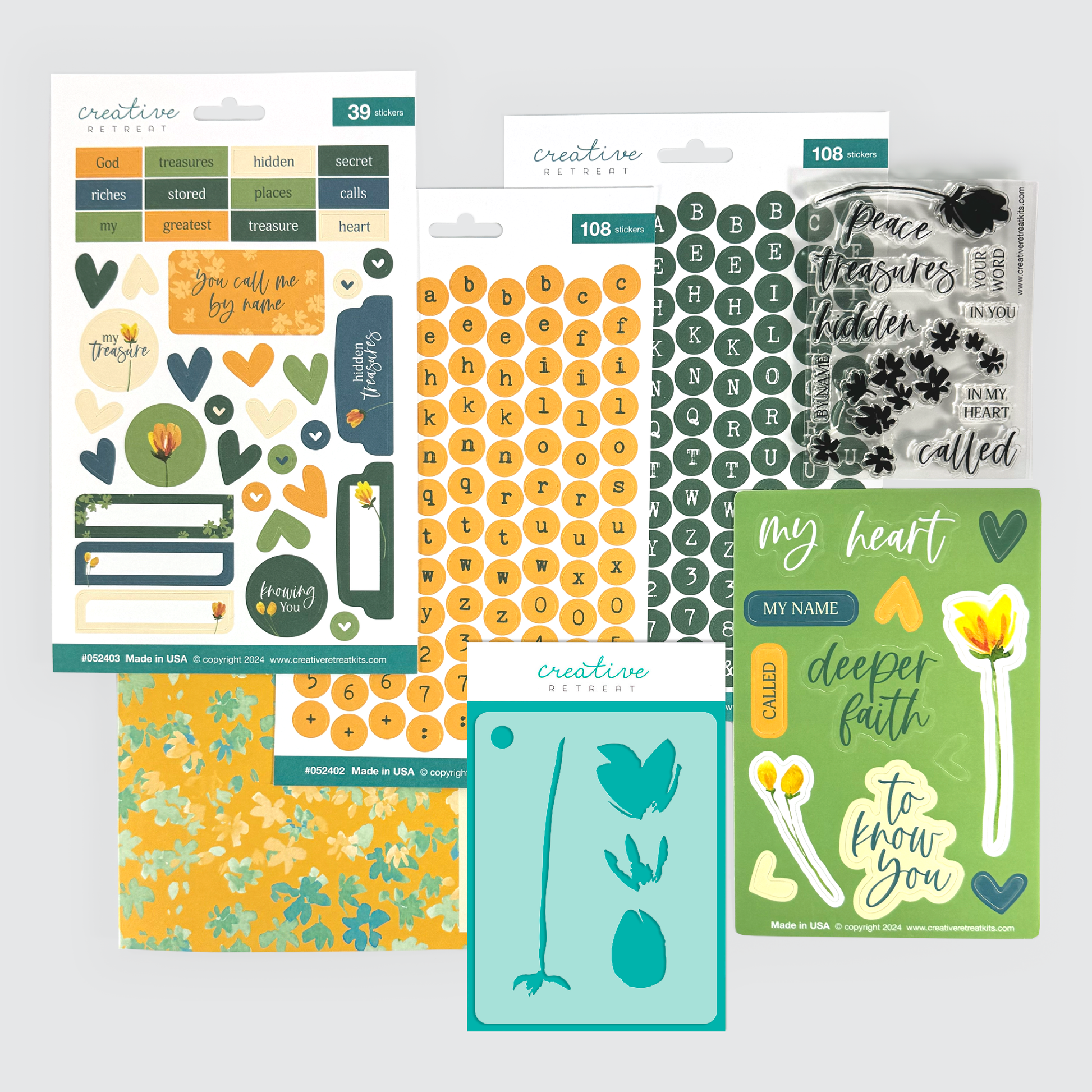 This Spring-inspired Faith Art Box features a beautiful devotional by author Jan Cookson. Jan points us to Isaiah 45:3 and to the hidden treasures God delights to give us. These spiritual treasures hidden in our hearts allow us to know Him more deeply. Join us for this inspiring creative bible study!