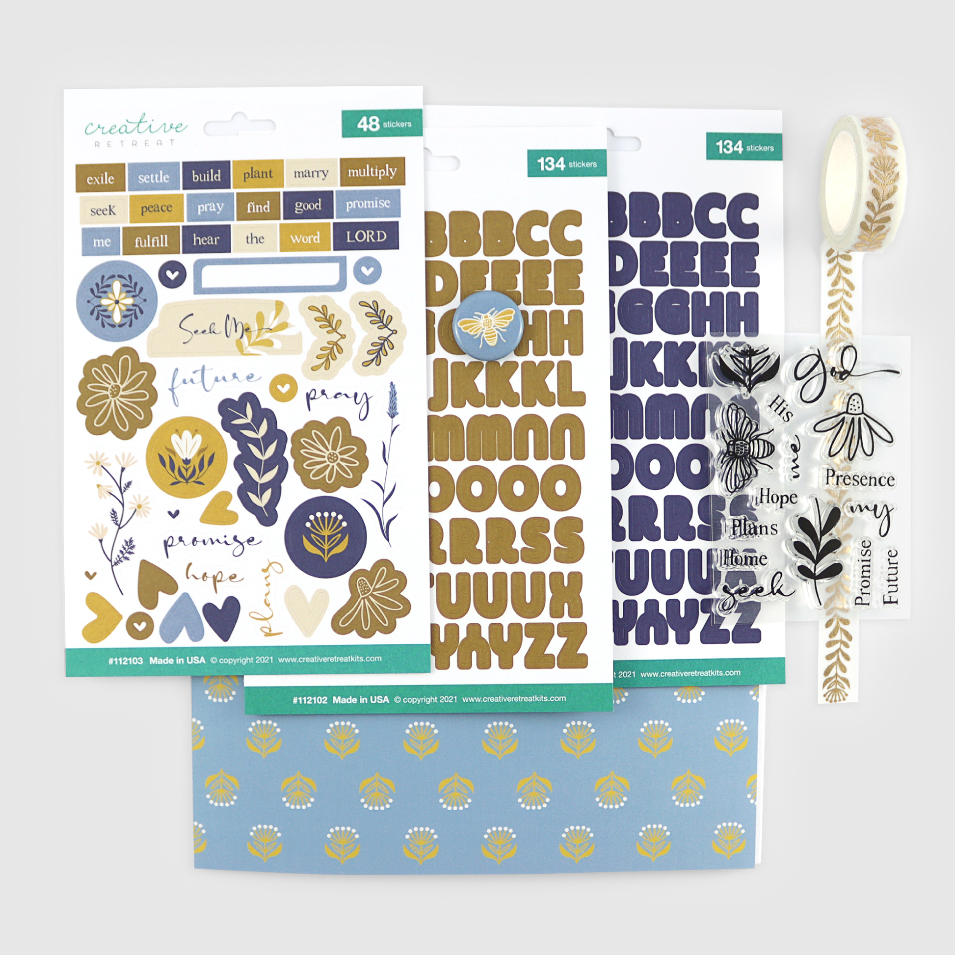 Featuring a warm color palette and muted blues, the "Hives & Homes" devotional kit will inspire your creative bible study. This beautiful devotional from Rebecca Faires looks at God's instructions to the Israelite exiles in Jeremiah 29. Together, we'll look at how we too, empty-handed exiles, can flourish right where we are. Join us!