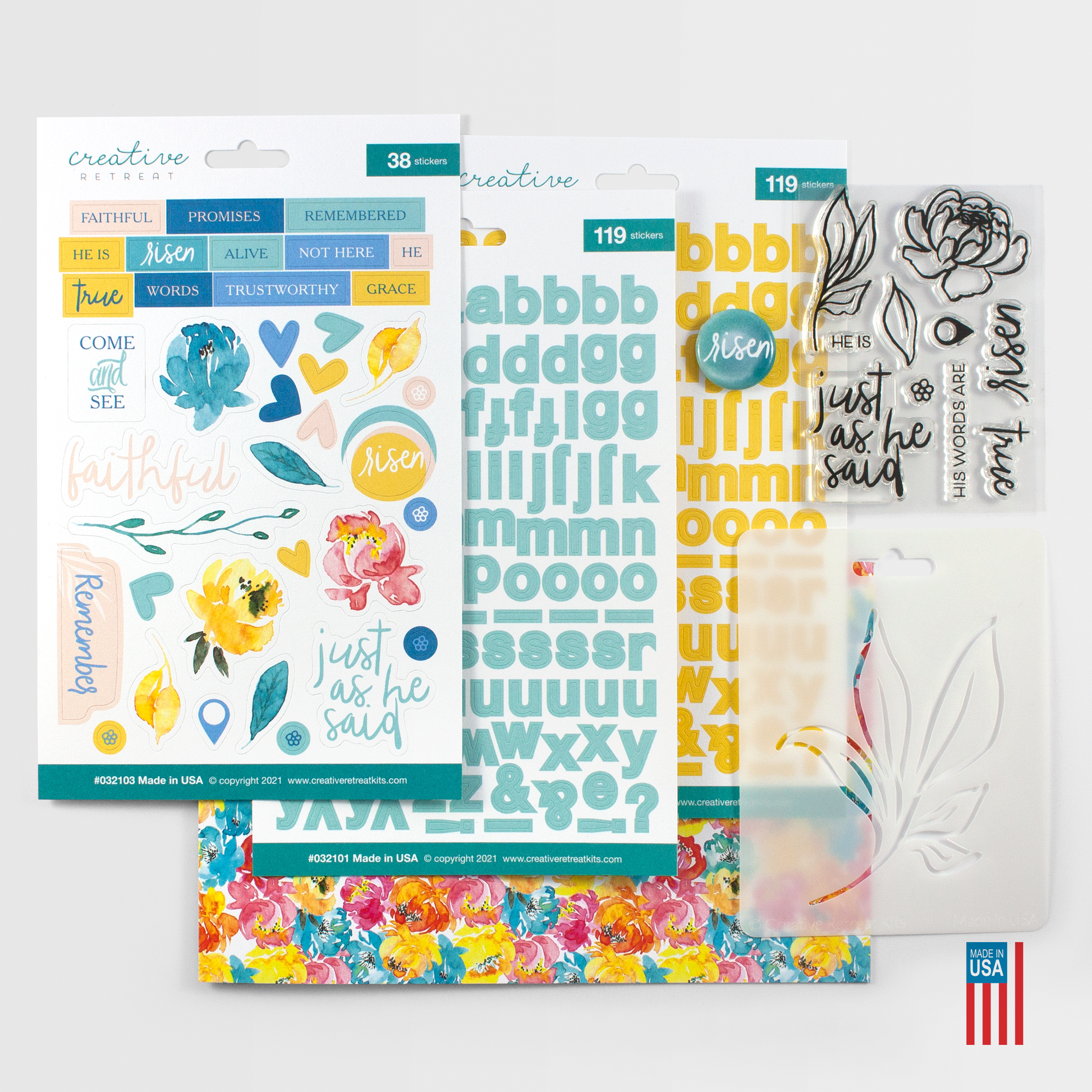 The angel said to the women, “He is not here; he is risen, just as he said.” (Matthew 28:6) Jesus had promised his disciples he would rise again. But in the darkness, it can be difficult to remember the truth we’ve heard in the light. This beautiful "Just As He Said" devotional by author Hayley Mullins reminds us that the living Savior is faithful and keeps His promises. Join us for a creative bible study featuring watercolor florals and a USA made stencil.