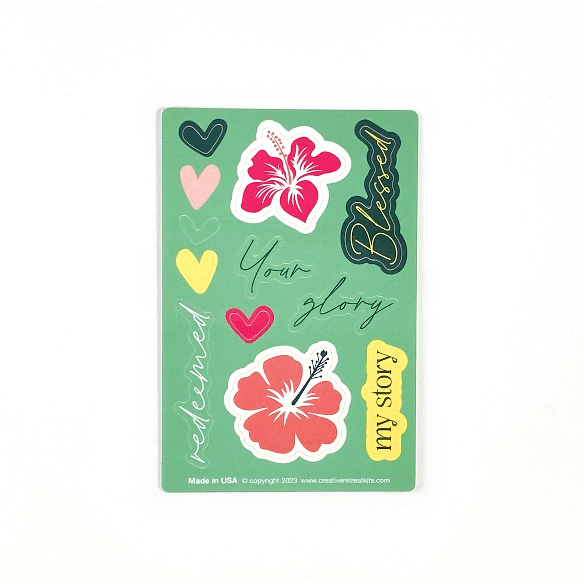 One 4” x 6” sheet of 12 durable, glossy vinyl-coated stickers. Peel and stick these decorative elements to dress up your bible journaling entries.
