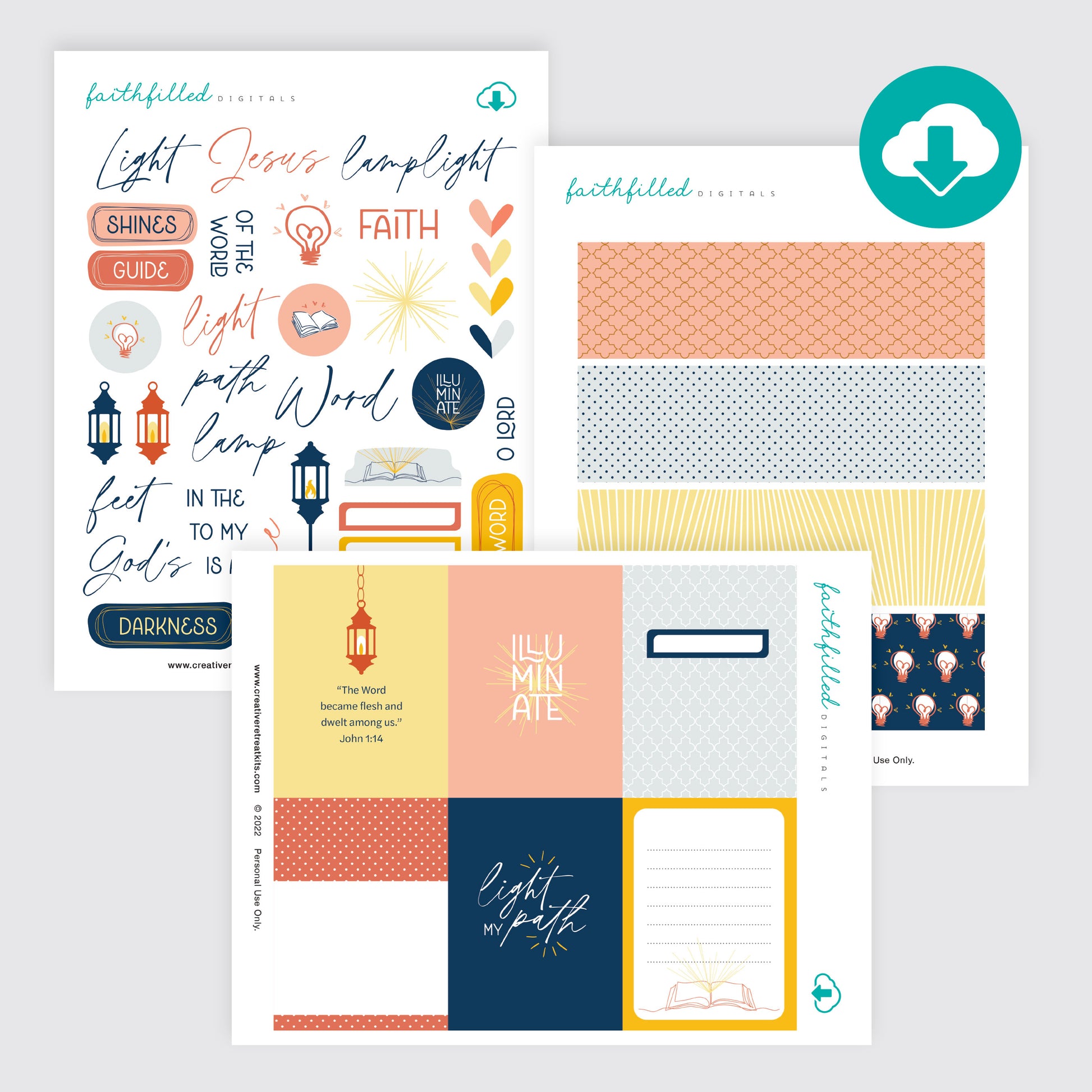 This printable set coordinates with the "Lamplight Faith" devotional also available as a digital download. Featuring
