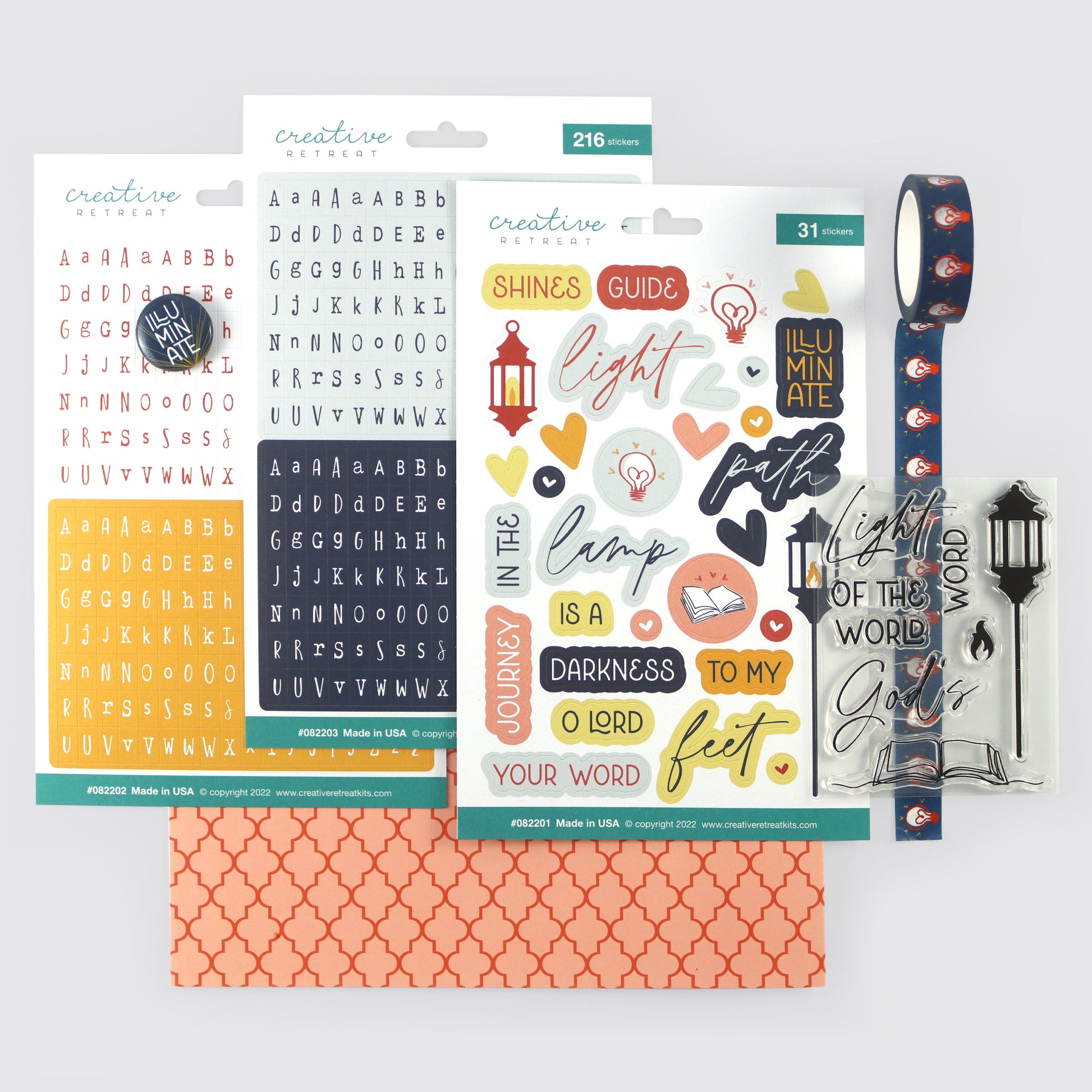- One (1) sheet of cardstock, faith-based decor stickers (made in USA)