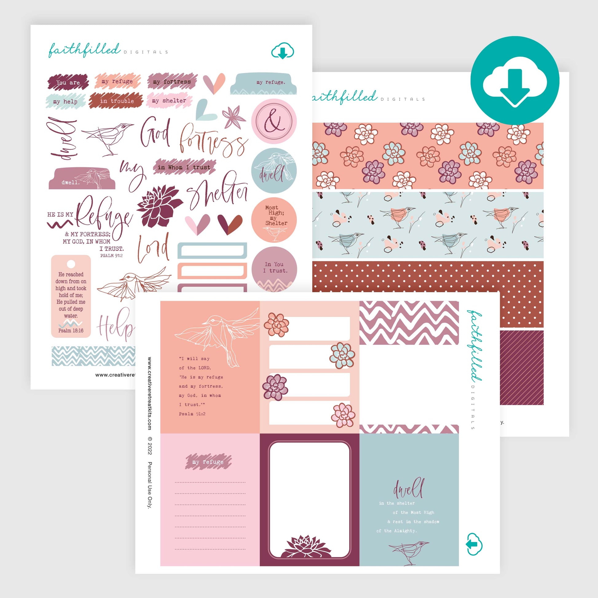 Featuring earthy tones and modern imagery, this printable set coordinates with the "My Refuge" devotional also available as a digital download.