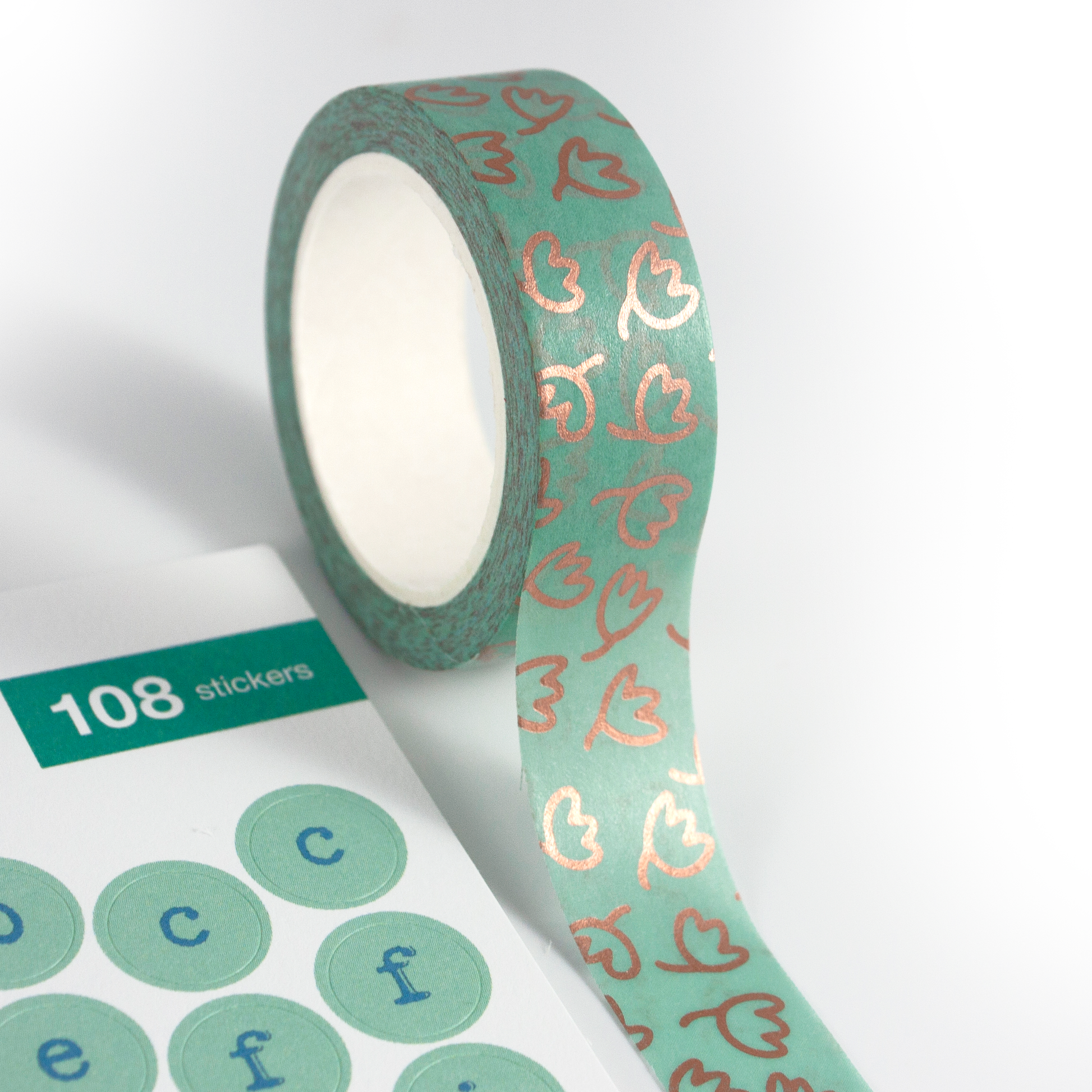 - One (1) 30 ft roll rose gold foil washi tape (made in China)