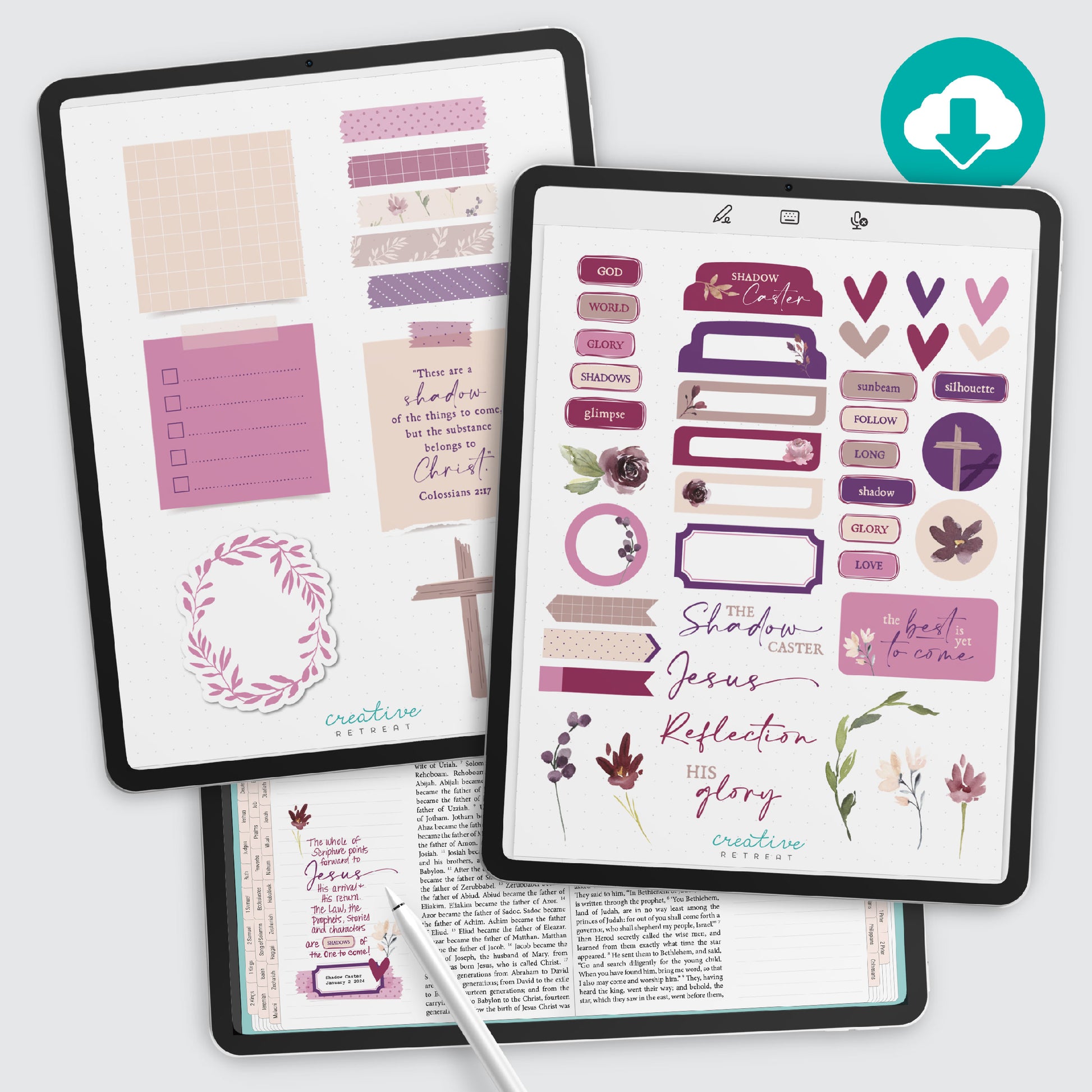 Digital Bible journalers, you're invited to join our creative Bible study! Download the "Shadow Caster" art elements and coordinating devotional to create your own responsive entries in a digital Bible. Ideally packaged for GoodNotes.