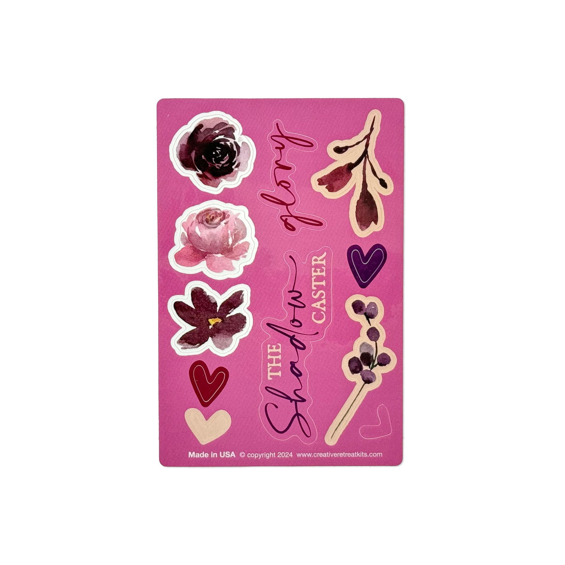One 4” x 6” sheet of 11 durable, glossy vinyl-coated stickers. Peel and stick these decorative elements to dress up your bible journaling entries.