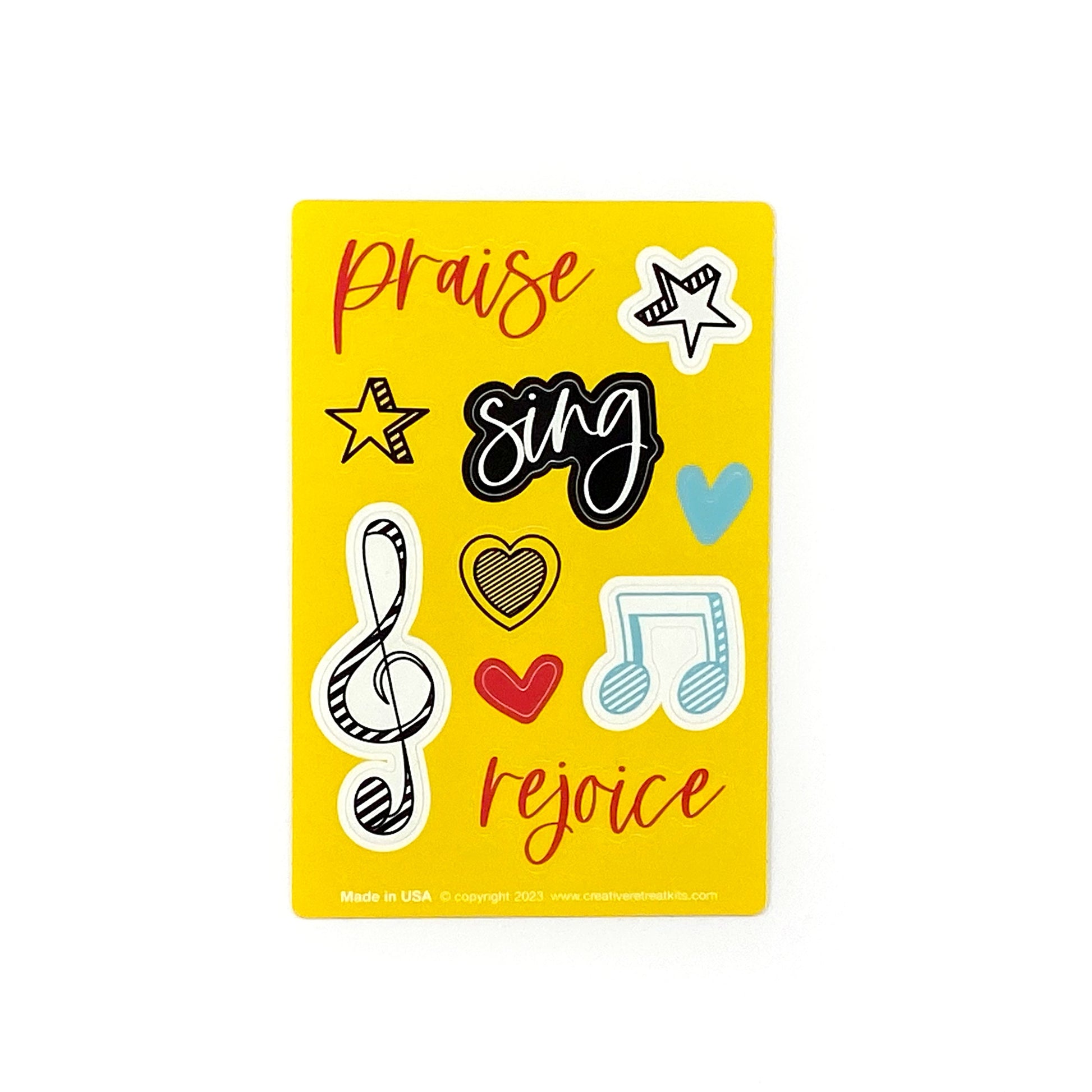 One 4” x 6” sheet of 10 durable, glossy vinyl-coated stickers. Peel and stick these decorative elements to dress up your bible journaling entries.