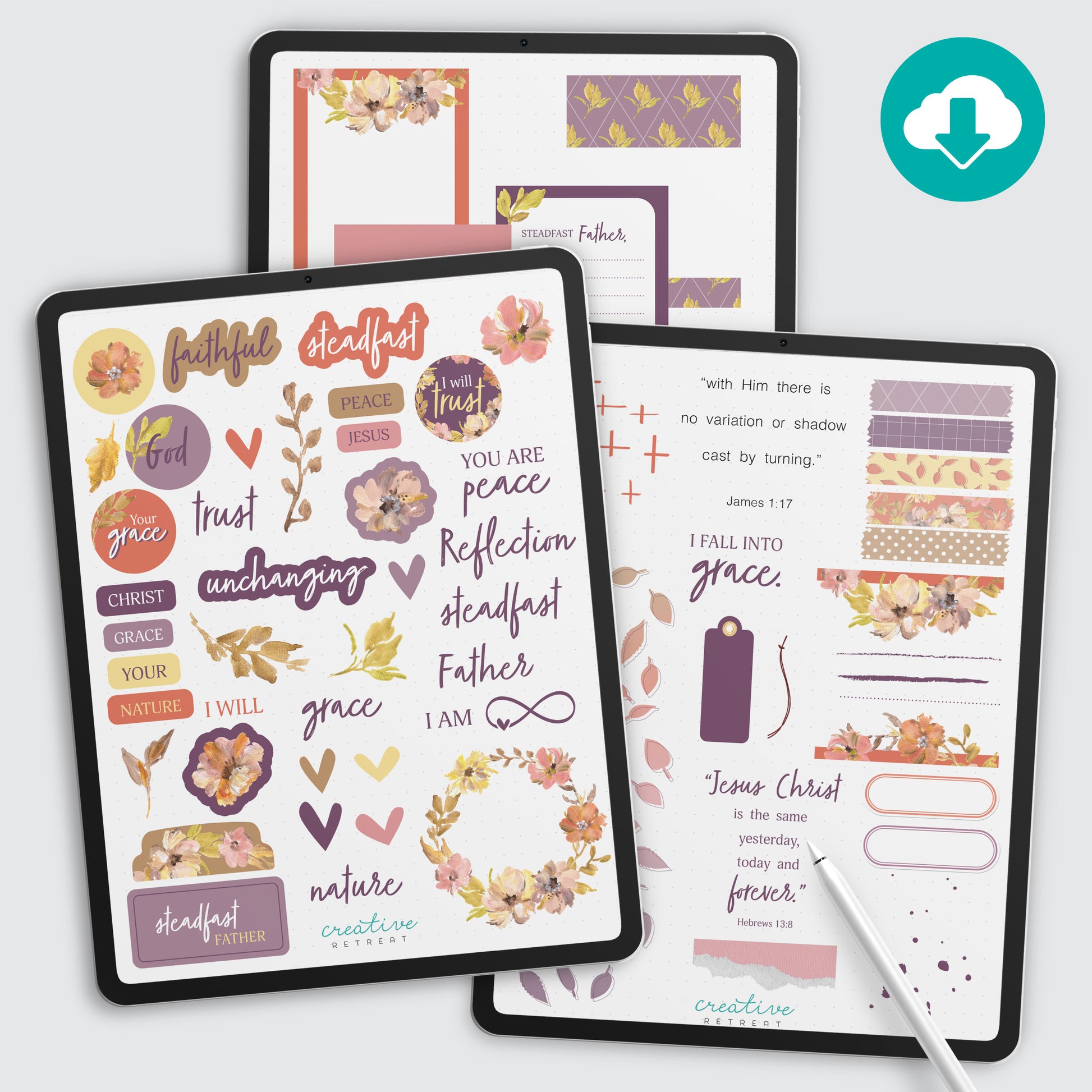 Digital Bible journalers, you're invited to join our creative Bible study! Download the "Steadfast" art elements and coordinating devotional to create your own responsive entries in a digital Bible. Ideally packaged for GoodNotes.