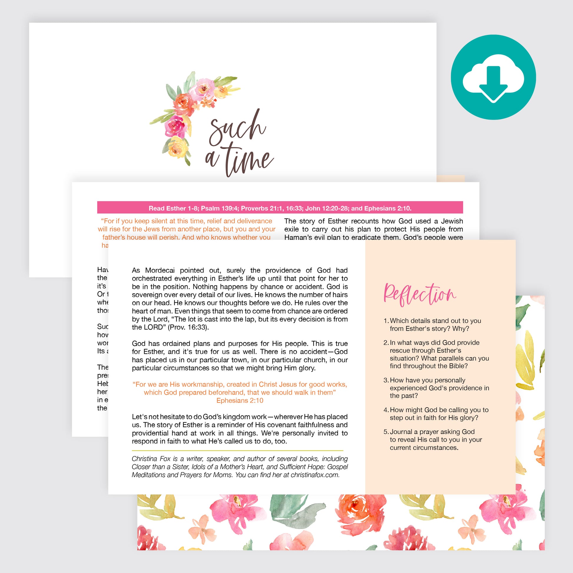 "Such a Time" is an inspiring devotional by author Christina Fox. Through the story of Esther, we'll be reminded of the divine providence of God-- no matter the time period. Join us for this creative bible study!