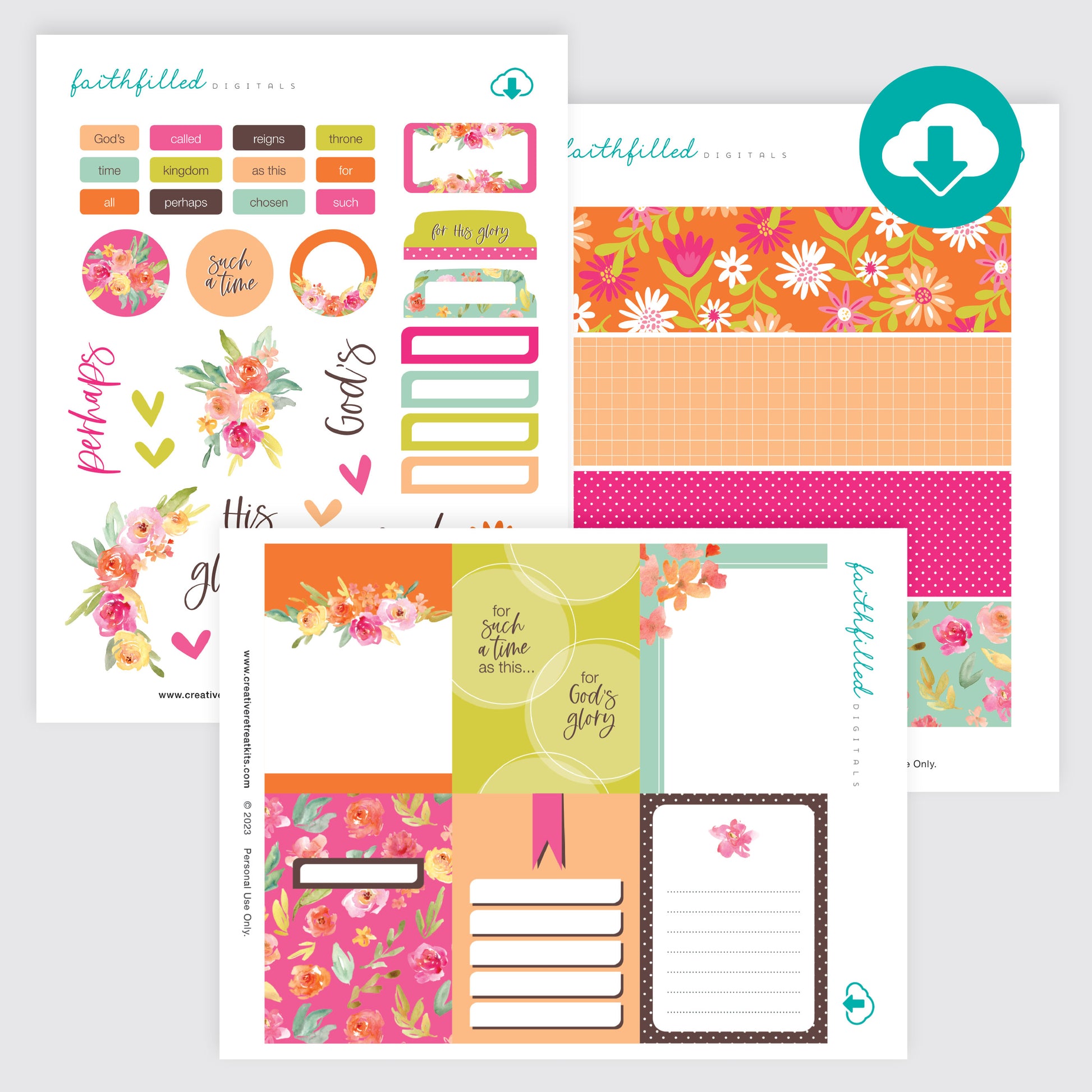 Featuring bright colors, watercolor florals, and modern script word art, this printable set coordinates with the "Such a Time" devotional also available as a digital download.