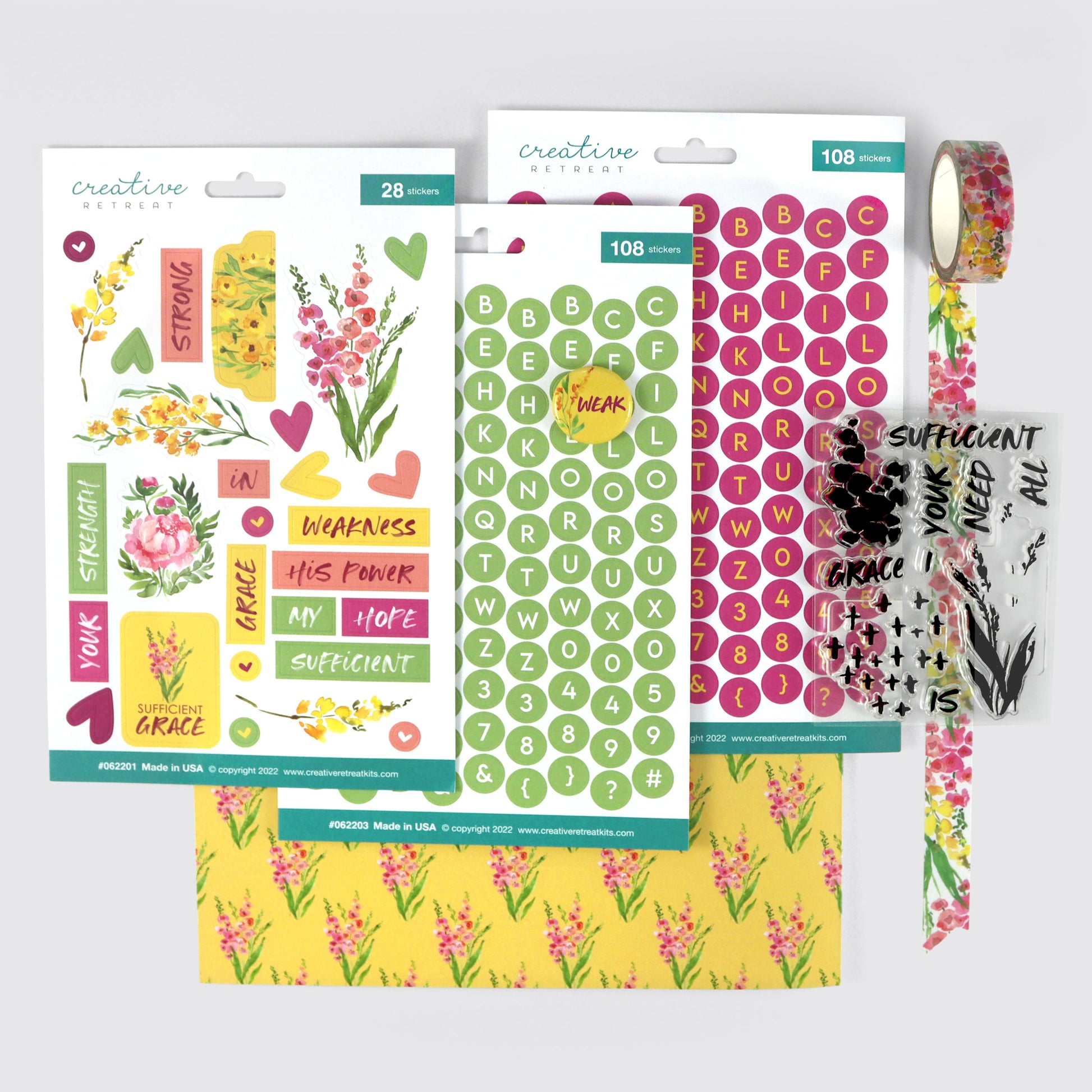 This bright and beautiful Faith Art Box features watercolor florals, hand-lettered titles, and a devotional by author Rebecca Faires. Together we'll explore 2 Corinthians 12:9 and discover how Jesus' grace is sufficient for each of us. Coupled with our weaknesses, Christ's power is made perfect! Join us for this inspiring creative bible study!