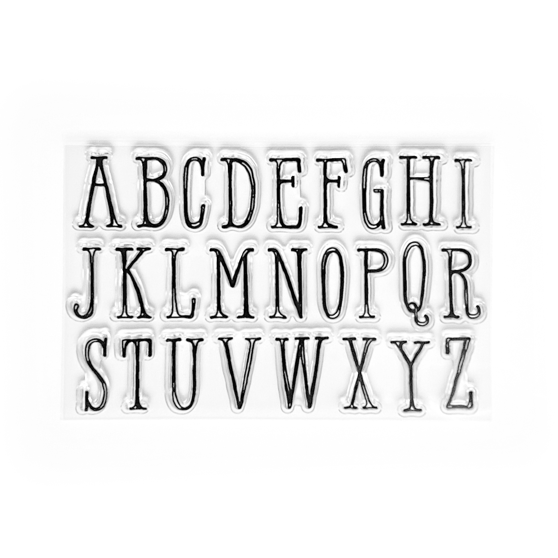 Peel a reusable stamp piece from the acetate sheet, place on a clear acrylic block, press on inkpad, and stamp! The Victory 6" x 4" alpha stamp set is a complete Victorian-style alphabet with hand-drawn flair. Each letter is approximately 1" tall.