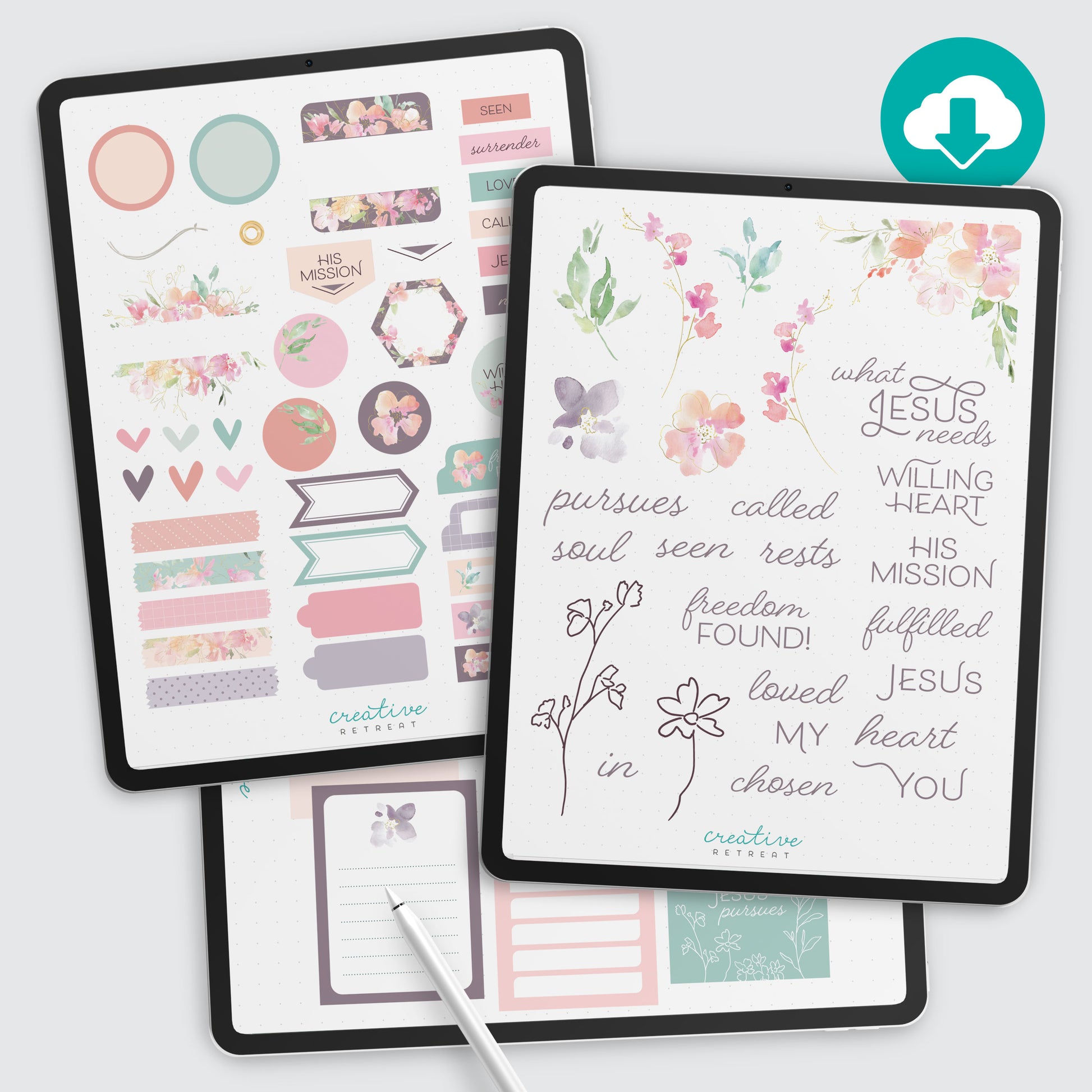 Digital Bible journalers, you're invited to join our creative Bible study! Download the "What Jesus Needs" art elements and coordinating devotional to create your own responsive entries in a digital Bible. Ideally packaged for GoodNotes.